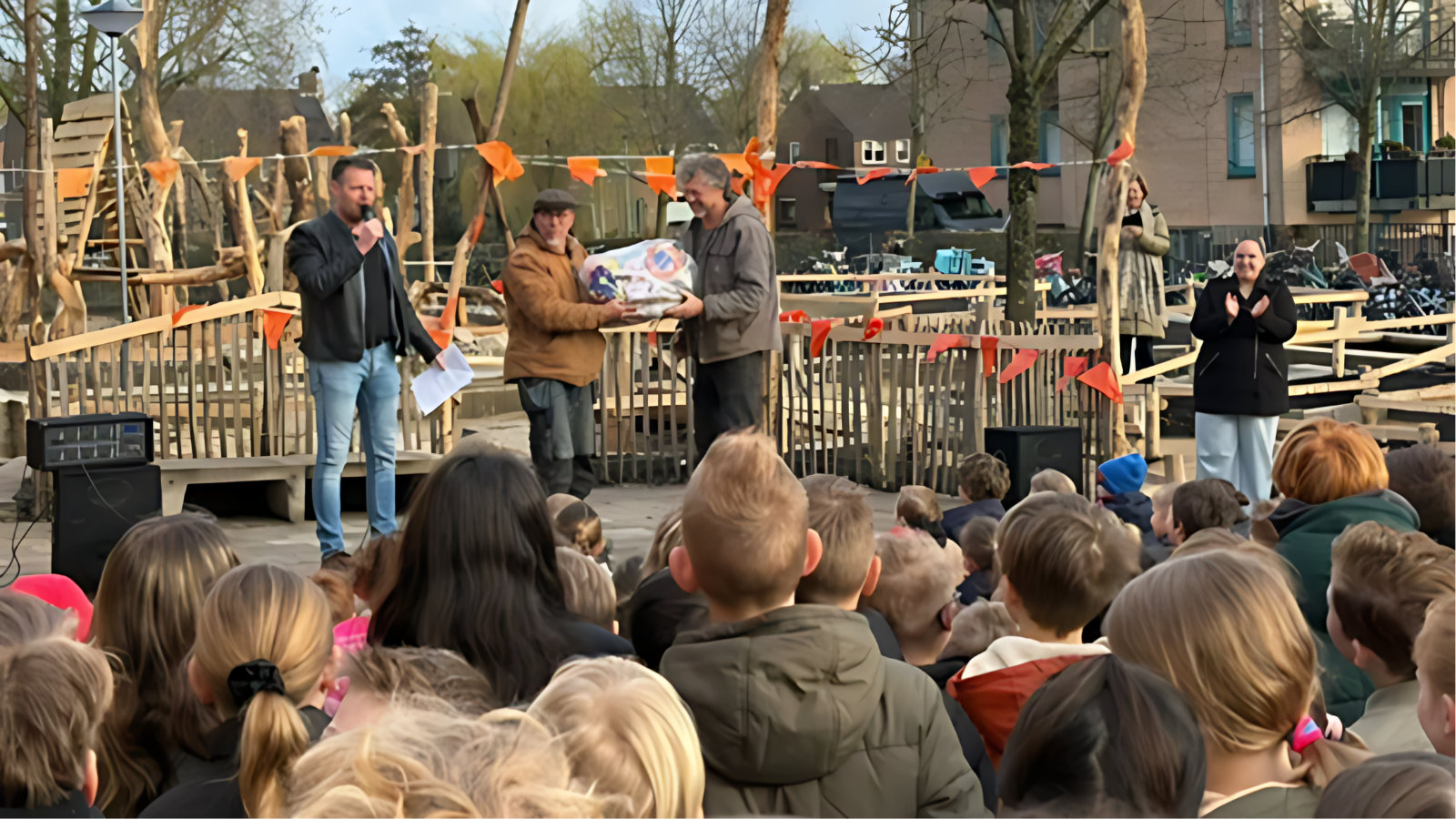Leerlingen, ouders en buurtbewoners vierden samen de opening van het nieuwe groene schoolplein.