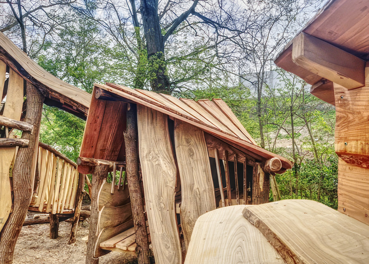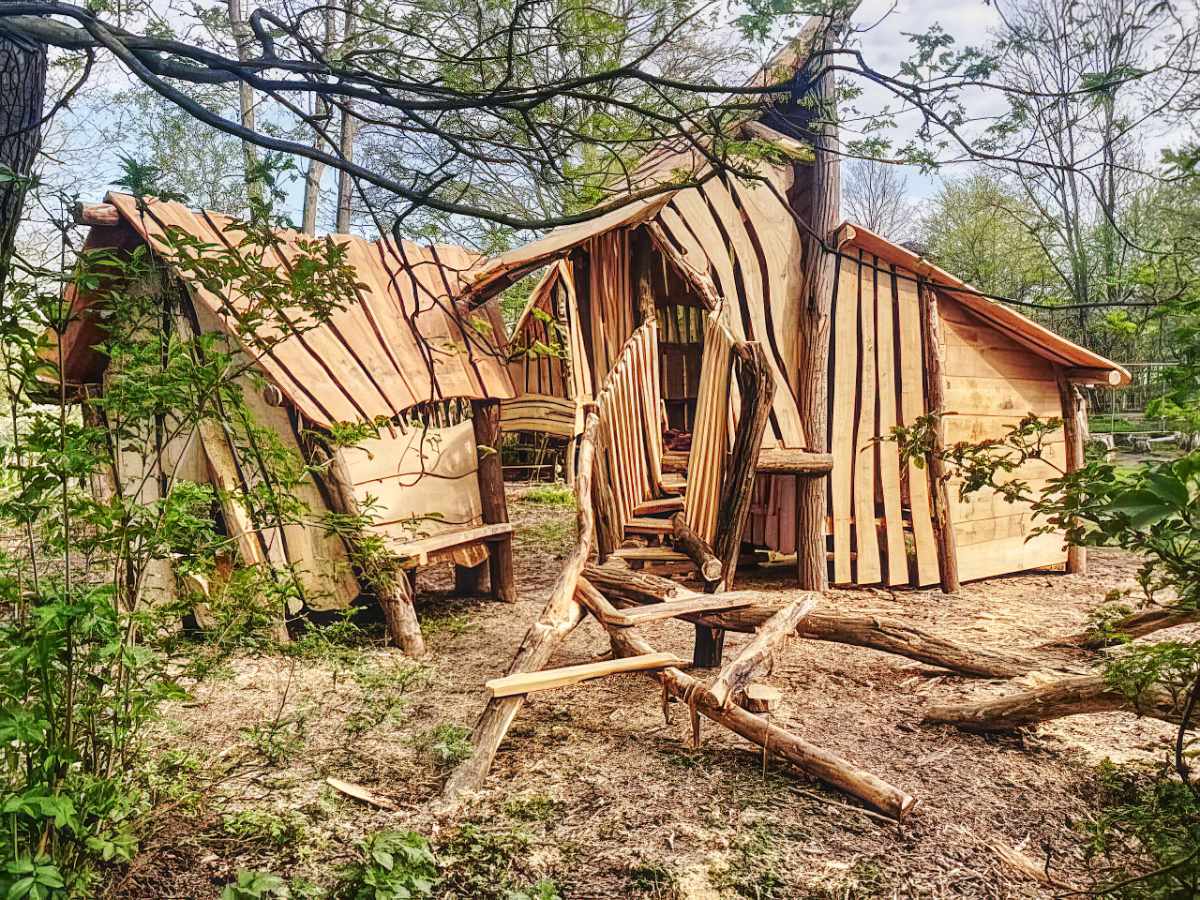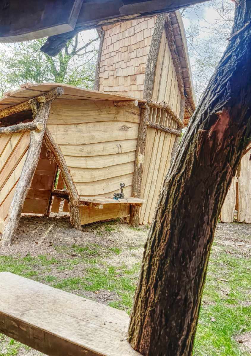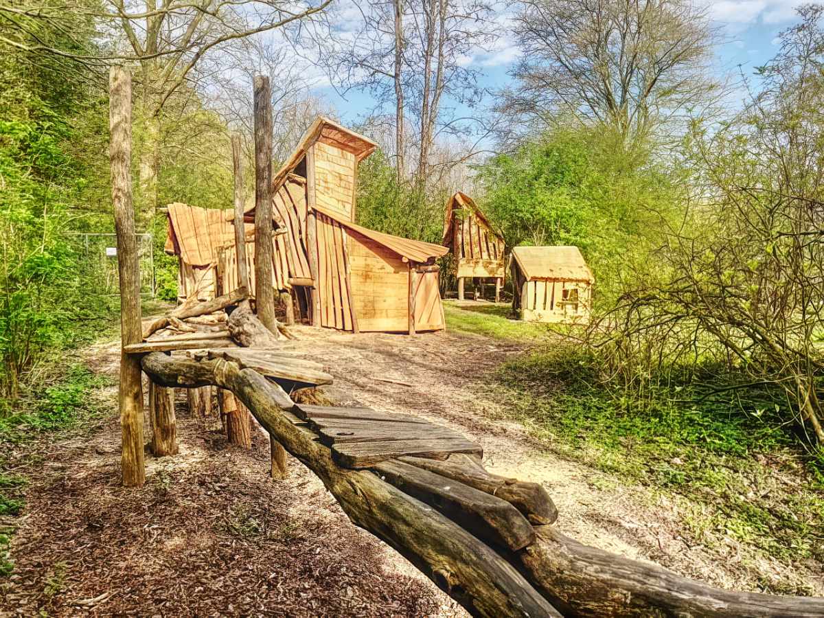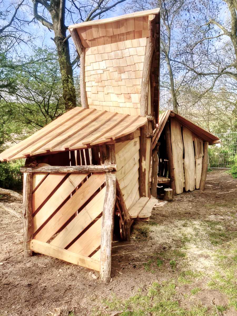 Zandraket mocht voor deze speelboerderij een huttendorp ontwerpen en bouwen.